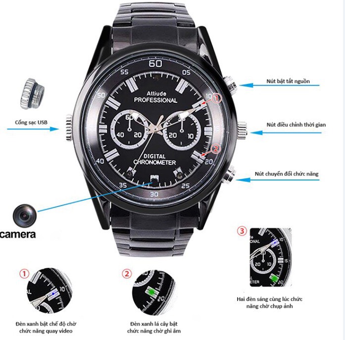 -3 chức năng chính: Quay phim ; Chụp ảnh ; Ghi âm