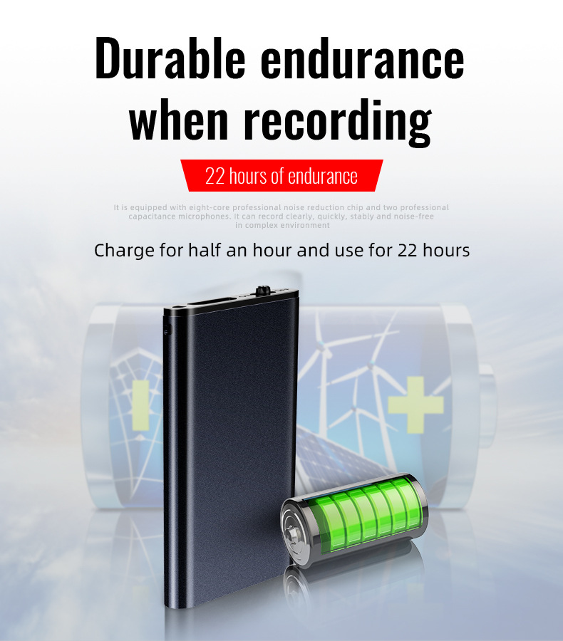 - Chỉ cần sạc trong 1 giờ bạn hoàn toàn có thể ghi âm liên tục trong 18 giờ.
